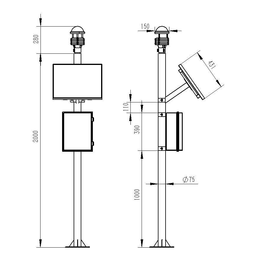 5.兩米碳鋼支架,頂部無(wú)需法蘭盤可直接套接傳感器